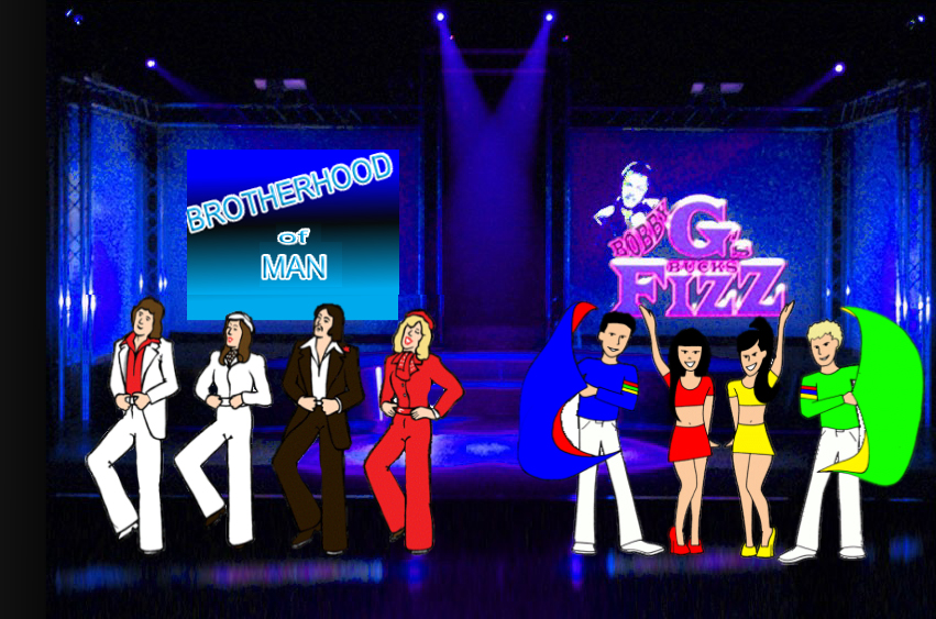 two icons of the Eurovision Song Contest. The British winners. First up were Lee Sheriden, Nicky Stevens,
